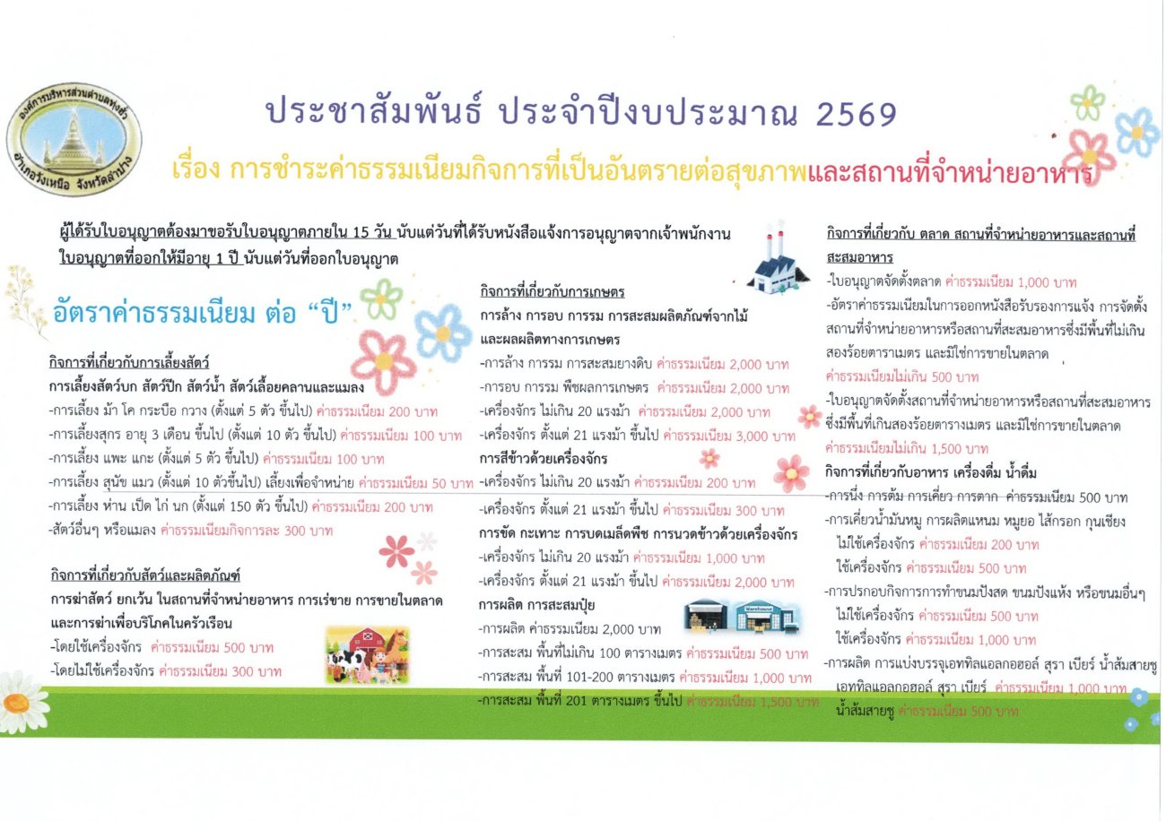 ประชาสัมพันธ์ 📢📢📣📣เรื่อง การยื่นแบบคำขอรับใบอนุญาต/ต่ออายุใบอนุญาตประกอบกิจการที่เป็นอันตรายต่อสุขภาพ ประจำปี พ.ศ.2569