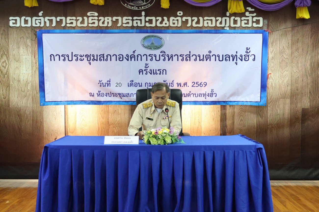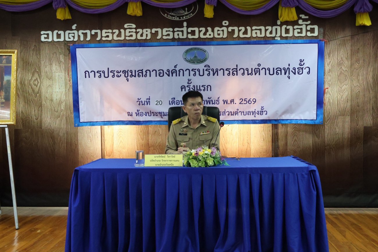 วันที่ 20 กุมภาพันธ์ 2569 เวลา 13.30 น. นายอำเภอวังเหนือ มอบหมายให้ นายพิพัฒน์ วิลาวัลย์ ปลัดอาวุโส เป็นประธานเปิดการประชุมสภาองค์การบริหารส่วนตำบลทุ่งฮั้วครั้งแรก เพื่อดำเนินการเลือกประธานสภาฯ รองประธานสภาฯ และเลขานุการสภาองค์การบริหารส่วนตำบลทุ่งฮั้ว ณ ห้องประชุมสภาองค์การบริหารส่วนตำบลทุ่งฮั้ว