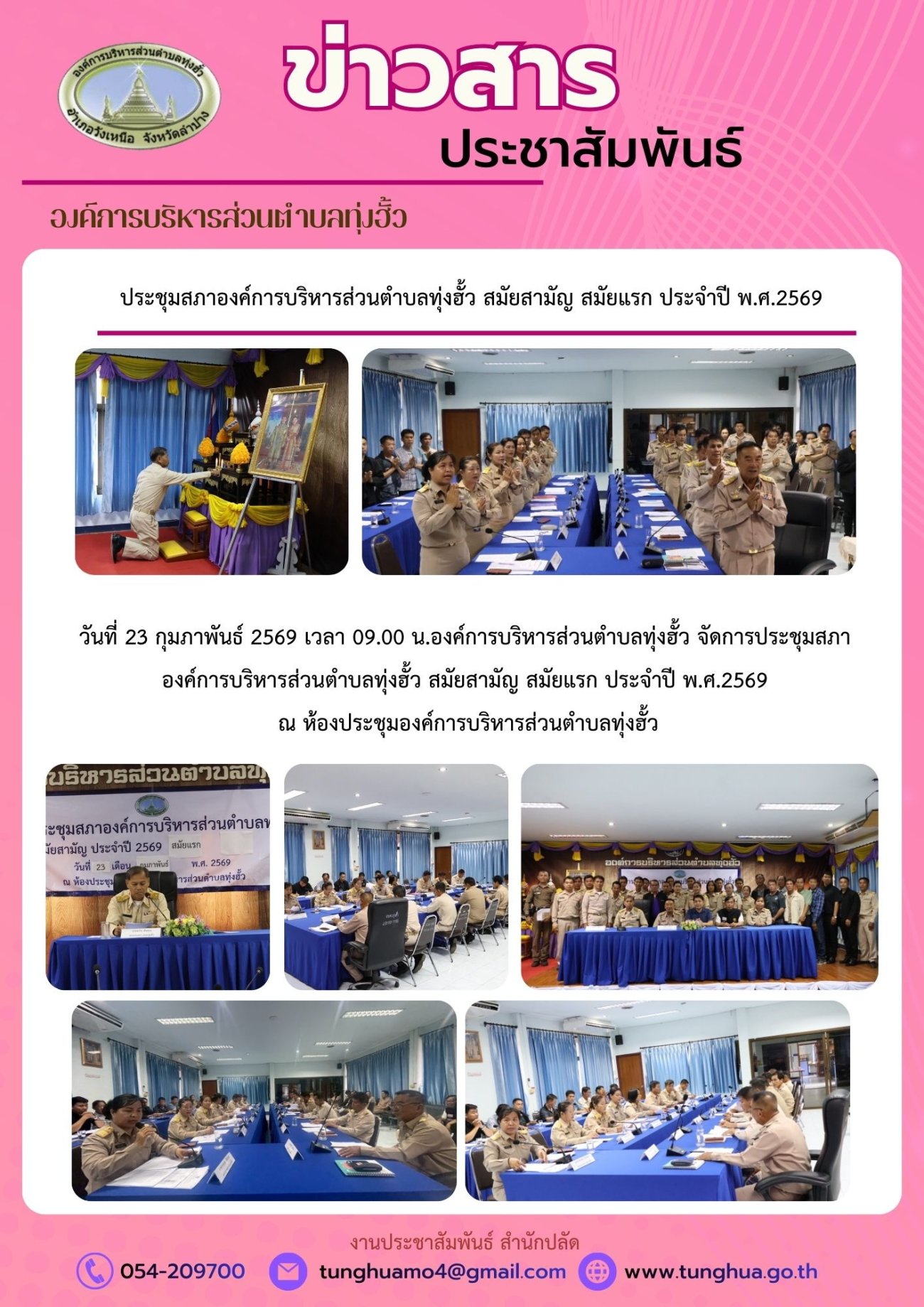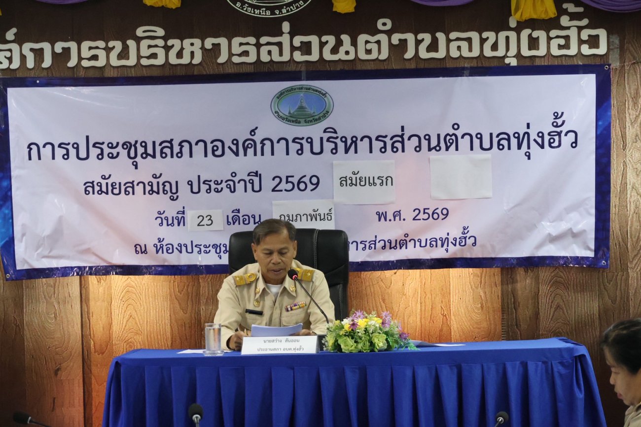 วันที่ 23 กุมภาพันธ์ 2569 เวลา 09.00 น. องค์การบริหารส่วนตำบลทุ่งฮั้ว จัดการวันที่ 23 กุมภาพันธ์ 2569 เวลา 09.00 น. องค์การบริหารส่วนตำบลทุ่งฮั้ว จัดการประชุมสภาองค์การบริหารส่วนตำบลทุ่งฮั้ว สมัยสามัญ สมัยแรก ประจำปี พ.ศ.2569 ณ ห้องประชุมองค์การบริหารส่วนตำบลทุ่งฮั้ว ณ ห้องประชุมองค์การบริหารส่วนตำบลทุ่งฮั้ว